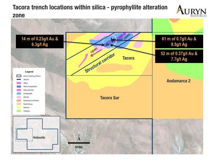 „Die mächtigen Zonen mit Gold- und Silberoxidmineralisierung, die wir in den hydrothermalen Brekzien an der Oberfläche entdeckt haben, bestätigen unsere These, dass das Zielgebiet ‚Tacora’ einen bedeutenden Mineralisierungskörper beherbergen könnte.“ Man freue sich auf die noch ausstehenden Ergebnisse der Felsschuttuntersuchungen, um noch mehr über die Ausdehnung des mineralisierten Systems zu erfahren. Danach plane man Folgearbeiten, um ein besseres Verständnis über das vorhandene Potenzial des Goldoxidsystems ‚Huilacollo’ zu bekommen, verdeutlichte Michael Henrichsen, COO und Chefgeologe von Auryn Resources.