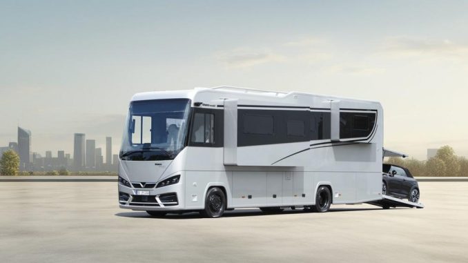 - VARIO Perfect 1000 SLIDE OUT | silver Edition: Ein weiteres luxuriöses Modell auf MB Actros 1846 mit PKW-Garage für einen Brabus-SMART. Das Fahrzeug überzeugt mit Glasband, MirrorCams, 360° Rundumsicht-Kamera-System, Leder-Armaturenbrett biColor. Interieur bentART Design, Edelholz amerikanischer Nußbaum hell, Wohnraumerker für ein exquisites Plus an Raumkomfort, Kaffeemaschine flächenbündig mit elektrischem Lift, Schlafplätze für 4 Personen, Jehnert Soundsystem, 5G Router, fahrzeugbreites Raumbad mit Rainshower, Heizung Alde und Webasto, Fußbodenheizung, Feinsteinzeug, Ladestation für Elektro-Velos.