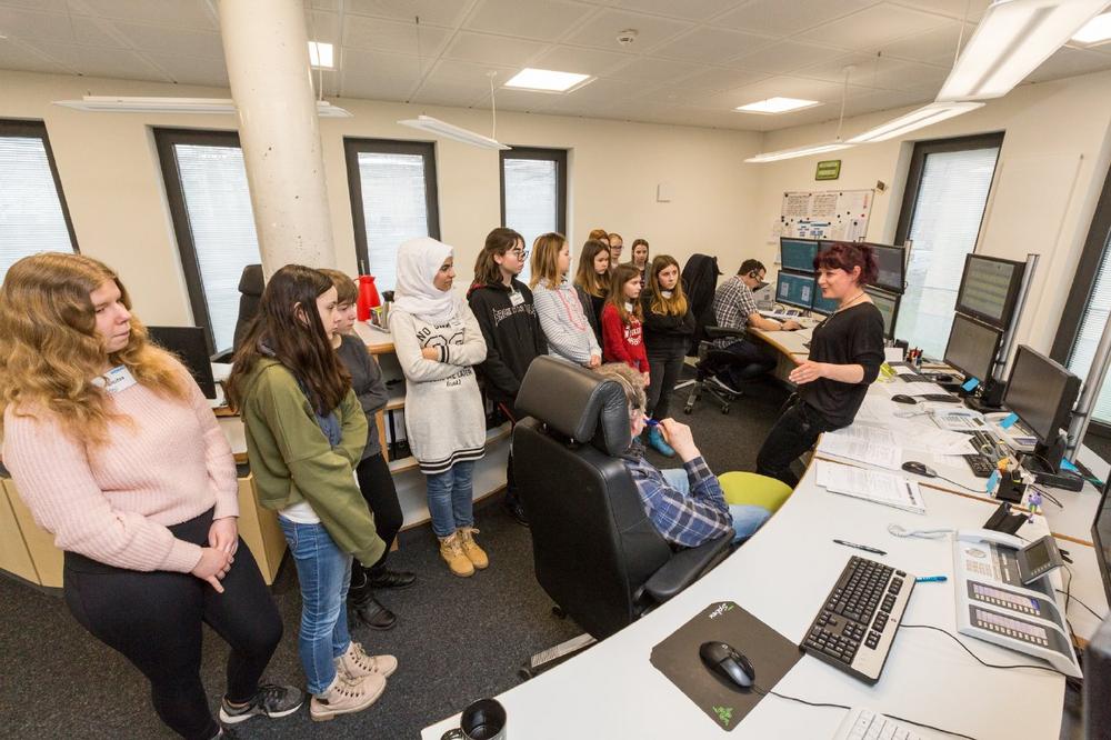 Nach einer kurzen Präsentation über das Energieunternehmen sowie die Vorstellung der Ausbildungsberufe und dualen Studiengänge besuchten die Teilnehmerinnen die Netzleitstelle. Die Erläuterung dieser modernen Schaltzentrale übernahm Annett Lux, die bei der WEMAG mit dem Elektroniker für Betriebstechnik einen typischen Männerberuf gelernt hat und jetzt das Stromnetz in Westmecklenburg überwacht und steuert.