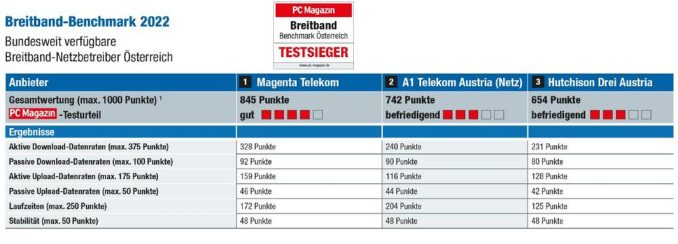 „Unser Breitband-Benchmark gibt einen realistischen Überblick, welches Interneterlebnis die Netzbetreiber ihren Nutzern österreichweit bereitgestellt haben. Erneut stellen wir fest, dass Magenta Telekom bundesweit deutlich die Nase vorn hat – Glückwunsch zu dieser Kontinuität. Die regionalen Anbieter legen in „ihren“ Bundesländern aber auch einen sehr starken Auftritt hin und setzen sich deutlich nach oben ab“, sagt Joachim Bley, Autor des PC Magazins.