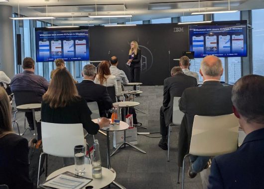 Den Abschluss des KI-Forums bildete die Tour durch das Watson Innovation Center: In einem einstündigen, geführten Rundgang erhielten die Teilnehmenden einen Einblick in verschiedene Themen wie autonomes Fahren, automatische Passkontrollen oder Prozessoptimierung im Gesundheitswesen.