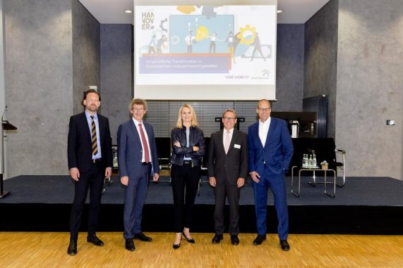 Die Möglichkeiten einer zukunftsorientierten Wertschöpfung für das sowohl von der Agrar- und Ernährungswirtschaft als auch von der Industrie geprägte Flächenland erörterten Frank Doods, Staatssekretär im Ministerium für Wirtschaft, Verkehr, Bauen und Digitalisierung des Landes Niedersachsen, Ulf-Birger Franz, Wirtschaftsdezernent der Region Hannover, Dr. Ariane Reinhart, Mitglied des Vorstands der Continental AG und Peter Dortans, Geschäftsführer der VDI/VDE Innovation + Technik GmbH.