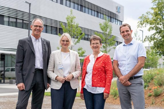 Bundestagsabgeordnete Natalie Pawlik (SPD) war vor kurzem zu Gast in der Modellfabrik des SKZ in Würzburg. Im Gespräch mit Vorstandsvorsitzendem Prof. Dr. Martin Bastian, Dr. Benedikte Hatz (Leitung Innovation und Technologietransfer) und dem stellvertretenden Geschäftsführer Dr. Benjamin Baudrit erhielt sie einen umfangreichen Einblick in die breiten Bildungs- und Forschungsangebote für die Kunststoffindustrie. Gemeinsam wurden wichtige aktuelle Herausforderungen insbesondere im Bildungsbereich diskutiert.