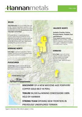 Auf dem Valiente Projekt zielt Hannan auf Porphyr-Kupfer-Gold-Vorkommen aus dem Miozän in einem Back-Arc-Gebiet im zentralen Osten Perus ab.  Hannan betrachtet den Gürtel als eine potenzielle neue metallogene Provinz in Peru.  Das Projekt liegt weit außerhalb der konventionellen Porphyrgebiete und weist regionale Ähnlichkeiten mit Lagerstätten wie dem großen Kupfer-Gold-Porphyr Bajo de Alumbrera in Argentinien auf.