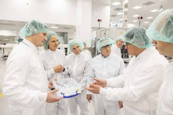 Als Ehrengast begrüßte B. Braun den Hessischen Ministerpräsidenten Boris Rhein, der gemeinsam mit CEO Anna Maria Braun und Francesco Grioli aus dem Bundesvorstand der IGBCE mit einem symbolischen Buzzer-Druck die Fertigung offiziell eröffnete. Bei einem Rundgang durch die neue Reinraumproduktion informierte sich der Ministerpräsident über die hochautomatisierten Prozesse und die strategische Bedeutung des Standorts.
