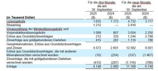 Gold Royalty Corp. („Gold Royalty” oder das „Unternehmen”) (- https://www.commodity-tv.com/play/gold-royalty-ceo-on-record-revenue-in-q2-future-growth-and-strong-share-price-appreciation/ -) (NYSE American: GROY) freut sich, seine vorläufigen Ergebnisse für das dritte Quartal 2025 sowie […]