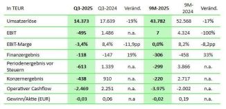 Umsatzerlöse von EUR 44 Mio. (-17 Prozent ggü. Vorjahresperiode) Operative EBIT-Marge von 0 Prozent Kernmarkt Deutschland: Umsatzerlöse von EUR 35,4 Mio. (-18 Prozent ggü. […]