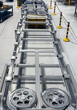 Der Kabel- und Steckverbinder-Hersteller suchte ein kurvenförmiges Handling-System, um Spulen mit elektrischen Drähten möglichst schnell und effizient durch neun Bearbeitungsstationen zu transportieren. Weitere Anforderungen waren eine ausreichende Tragfähigkeit, um Spulen mit einem Gewicht zwischen acht und zwölf Kilogramm zu transportieren, und die Möglichkeit der einfachen und platzsparenden Installation auf einer zehn Meter langen, bereits in die Anlage integrierten Tragstruktur.