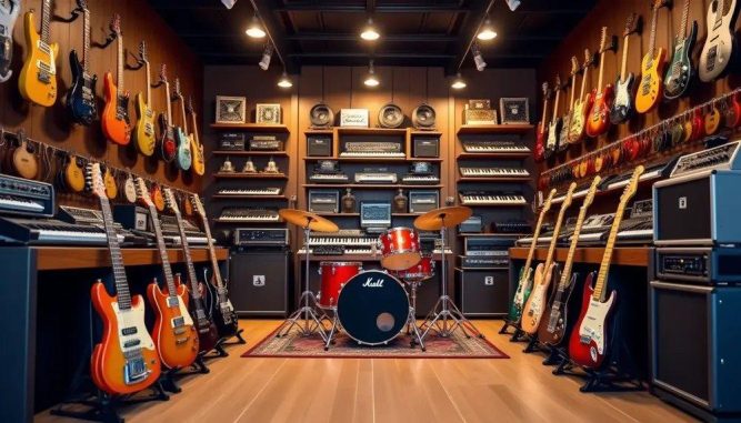 - Musikinstrumente: Gitarren, Klaviere, Schlagzeuge und mehr.