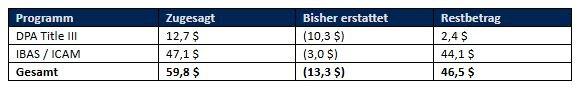 – IperionX hat im Rahmen der DPA Title III- und IBAS/ICAM-Programme des US-Kriegsministeriums Subventionen der US-Regierung in Höhe von insgesamt 59,8 Millionen USD erhalten. Alle Gelder im Rahmen dieser Förderungen wurden vollständig zugesagt, wodurch das Kapital innerhalb des Bundesbuchhaltungssystems rechtlich an IperionX gebunden ist.