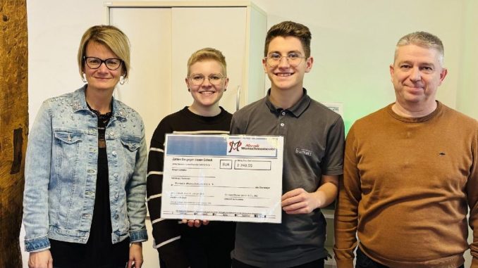 Im Januar überreichten die Vorsitzende der Jugend- und Auszubildendenvertretung von Bürkert Fluid Control Systems sowie der Beisitzer stellvertretend für das Unternehmen einen Spendenscheck über 2.240 Euro an den Niedernhaller Verein „Marcels Wunschmomente“. Die Summe stammt aus der Tombola des traditionellen Bürkert-Weihnachtsmarktes und soll die wertvolle Arbeit des Vereins unterstützen.
