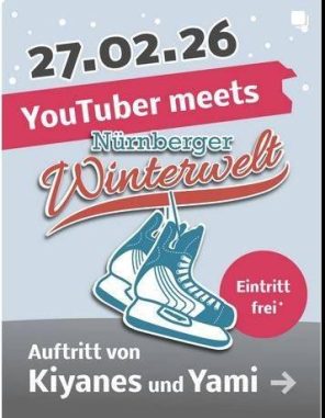 Am 27.02.2026 ab 17 Uhr verwandelt sich die Winterwelt vom Post SV auf dem Nürnberger Hauptmarkt in eine Bühne für ein unvergessliches Live-Erlebnis! Die bekannten Youtuber Kiyanes und Yami laden dann vor Ort zu Performances, Autogramm- und Fotostunde.