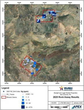 „Mit der Veröffentlichung der ersten Gesteinsprobenergebnisse hat das Unternehmen die kurzfristigen Bohrziele sowohl auf dem Grundstück Skylight als auch auf dem Grundstück Legal Tender vorangetrieben“, sagt Anthony Zelen, CEO von Rush Gold. „Bei Legal Tender haben wir ein lateral persistentes hochgradiges Silber-Basismetall-Adersystem identifiziert, das sich für eine potenzielle Abgrenzung durch Oberflächenbohrungen eignet. Bei Skylight zeigen die Untersuchungsergebnisse das Vorhandensein dessen, was nach Ansicht des Unternehmens der obere Teil eines weit verbreiteten primären hydrothermalen Goldsystems sein könnte. Wir freuen uns nun darauf, unsere Aufmerksamkeit auf den Genehmigungsprozess für die Bohrungen zu richten und zusätzliche Ergebnisse aus der WV-3-Alterationsstudie zu integrieren.“
