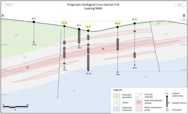 Jüngste Explorationen in der Nähe historischer Bohrungen haben spektakuläre Gold- und Silbergehalte an der Oberfläche identifiziert, was auf beträchtliches unerschlossenes Potenzial hinweist. Die hohen Gehalte von Nickel, Zink, Blei und Antimon – Metalle, die für industrielle Anwendungen und grüne Technologien unerlässlich sind – wurden in mehreren Bohrlöchern des Bohrprogramms von 1969 bis 1970 bestätigt, wobei Kobalt und Edelmetalle zum Zeitpunkt der Bohrungen nie analysiert wurden.