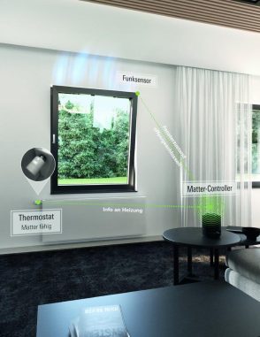 Der kompakte Schüco Funksensor, der vollständig in Deutschland entwickelt und produziert wird, fügt sich optisch unscheinbar in Fenster und Türen ein – ob werkseitig eingebaut oder nachgerüstet. Dabei kann er in alle Schüco Fenster mit VarioTec Advanced Beschlag sowie – mithilfe eines mitgelieferten Zapfenadapters – in gängige Fenster mit Eurobeschlag installiert werden. Über einen magnetischen Kontakt in der Eckumlenkung oder der Riegelstange meldet der Funksensor den Zustand „offen“ oder „geschlossen“ an das Smart-Home-System. Hierfür kommuniziert er auf Basis von Matter, dem gemeinsamen Kommunikationsstandard der gängigen Smart-Home-Hersteller. Der Standard ermöglicht, dass herstellerübergreifend unterschiedliche Smart-Home-Geräte ein gemeinsames Netzwerk bilden. Das schnelle Thread Netzwerkprotokoll, sorgt zudem dafür, dass der Schüco Funksensor Teil eines verknüpften Netzwerks wird. Der Datenaustausch wird dadurch schneller, stabiler und insgesamt nutzenfreundlicher. Die Stromversorgung erfolgt über zwei handelsübliche AAA-Batterien. Ein Stromanschluss im Element ist nicht erforderlich. Der stromsparende Betrieb sorgt für eine sichere Funktionsleistung.