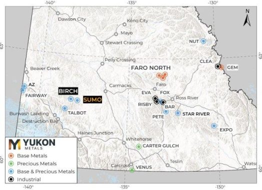 „Mit der Aufnahme des Konzessionsgebiets Sumo stärken wir unser Explorationsportfolio in diesem Distrikt weiter“, so Jim Coates, CEO von Yukon Metals. „Ryan Burke hat bei der Prospektion dieser Flächen bedeutende Arbeit geleistet und wir freuen uns darauf, auf dieser Grundlage aufzubauen. Da sich die Kupfer-Gold-Explorationskonzessionsgebiete Sumo und Birch entlang desselben geologischen Trends, nur 10 Kilometer voneinander entfernt, erstrecken, bieten die Ähnlichkeiten dieser beiden Projekte die überzeugende Möglichkeit für ein integriertes Explorationsprogramm. Dieser Erwerb stärkt die Kupfer-Gold-Explorationshypothese von Yukon Metals in bedeutendem Maße.“