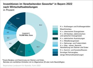 Die bayerischen Betriebe des Verarbeitenden Gewerbes investieren im Jahr 2022 rund 14,1 Milliarden Euro. Nach Angaben des Bayerischen Landesamts für Statistik sind das knapp 1,3 Milliarden Euro bzw. 9,9 Prozent mehr […]