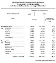 Der Güterumschlag der bayerischen Binnenschifffahrt liegt im ersten Halbjahr 2023 bei knapp 2,5 Millionen Tonnen. Das entspricht einem Rückgang um 15,9 Prozent im Vergleich zum […]