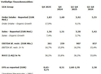 GEA veröffentlicht vorläufige Zahlen und übertrifft Erwartungen bei wesentlichen Finanzkennzahlen für 2025, bekräftigt beschleunigtes Umsatzwachstum für 2026