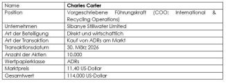 Sibanye-Stillwater (Tickers JSE: SSW und NYSE: SBSW) gibt gemäß den Absätzen 6.77 bis 6.90 der JSE Limited Listings Requirements Folgendes bekannt: Name: Richard Stewart Position: Vorstandsmitglied […]